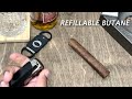 A smooth black matte center surrounded by a polished silver tone finish makes this a mysterious and elegant lighter. Buit into the Triad is a hidden 7mm cigar punch at the bottom of the lighter. Press down on the button on the front of the lighter to ignite a powerful triple flame. This triple torch flame will light up your cigar or cigarette in no time with its trio flames.